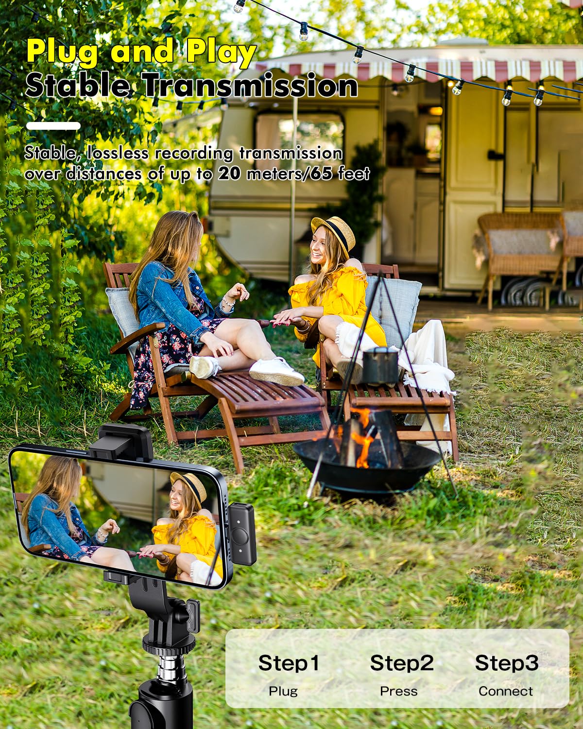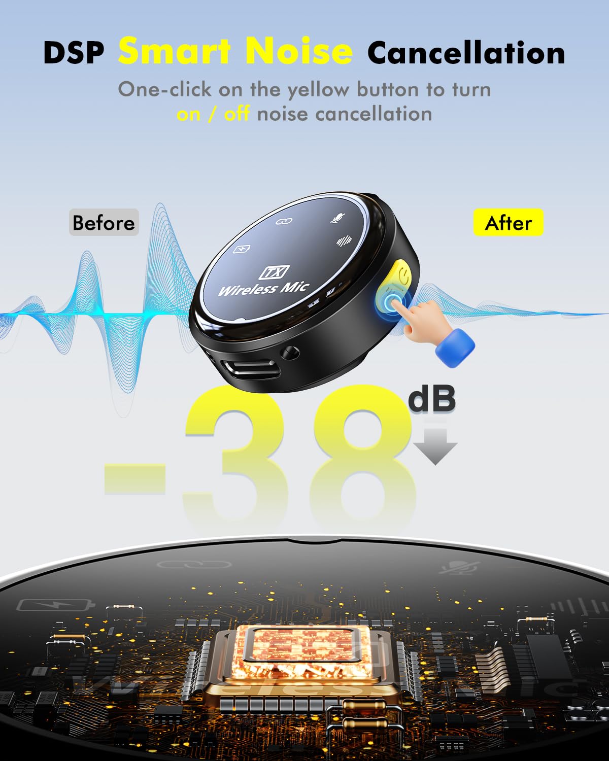 Kingone Wireless Mic for Youtubers, Realtime Monitoring, Noise Cancellation, Duration Magnetic Clip Mini Wireless Microphone with Charging Case 30H, Compatible with Type-C and Lightning Adapter